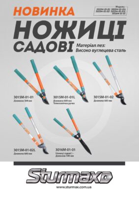 Sturmax 3015M-01-01 – садовий сучкоріз. Довжина – 384 мм. Призначений для виконання різноманітних завдань у садівництві та ландшафтному дизайні: видалення старих, хворих або пошкоджених гілок, підтримання певної форми дерев та чагарників, видалення небажаних молодих пагонів, що загущують крону. Модель оснащена довгими ручками, що забезпечують потужний важіль для легкого зрізу навіть товстих гілок діаметром 20 – 30 мм. Леза інструменту виконані з високоміцної сталі HCS – мають високу міцність та зносостійкість, а також стійкі до деформацій. Надійності хвата сприяє наявність прогумованих накладок на рукоятках.