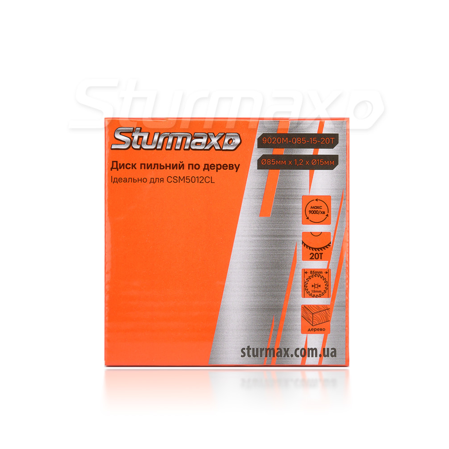 Sturmax 9020М-085-15-20T – пильний диск для робіт із м’якими та твердими породами деревини. Зовнішній діаметр – 85 мм, внутрішній посадковий діаметр – 15 мм. Диск має 20 зубів – характеризується високою швидкістю різу завдяки гарному виносу тирси. Максимально ефективний під час виконання швидких поздовжніх розпилів. Тіло диска виконано із загартованої вуглецевої сталі, що гарантує його міцність та стійкість до деформацій.
