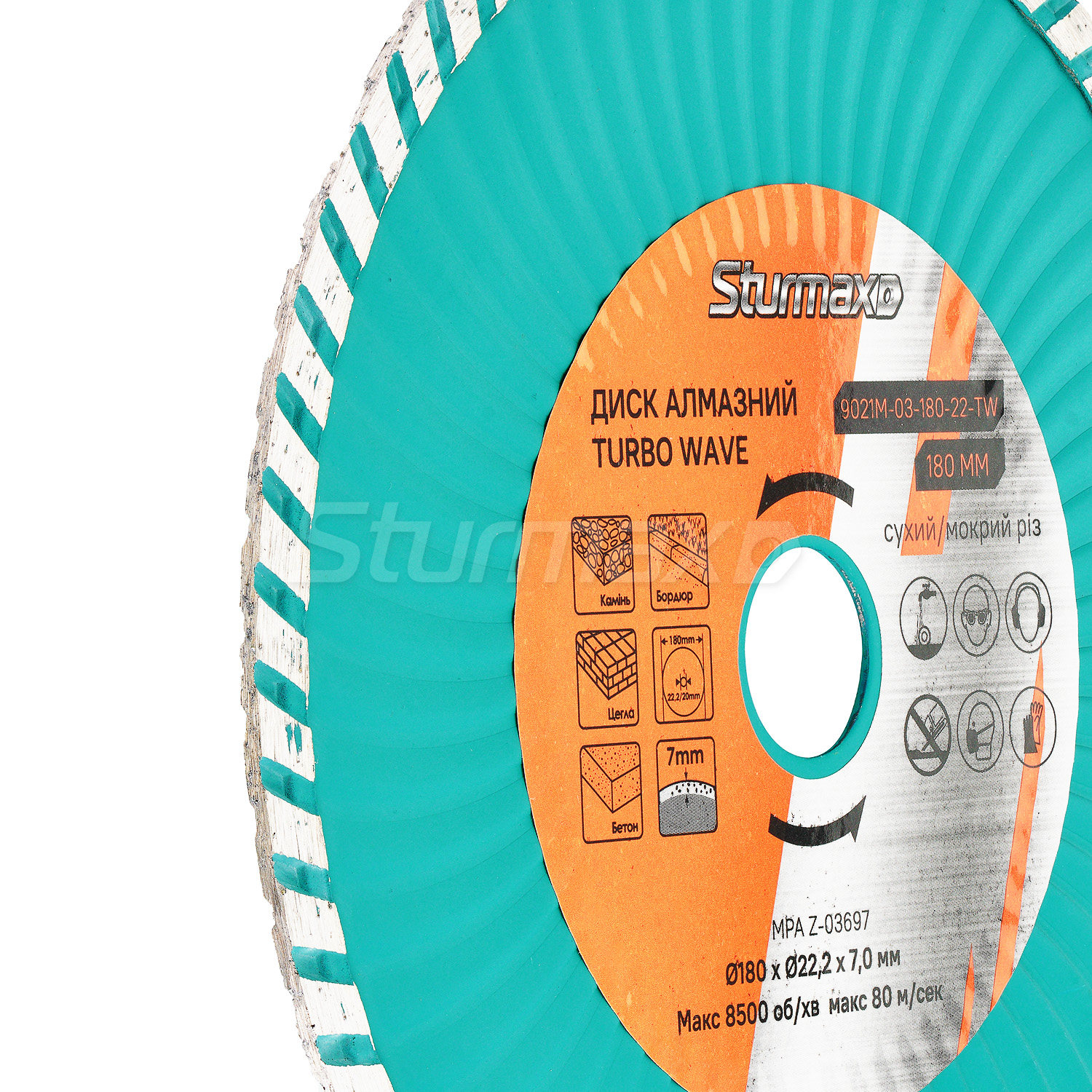 Sturmax 9021M-03-180-22-TW Диск алмазний турбо-хвиля 180×22 мм – Sturmax
