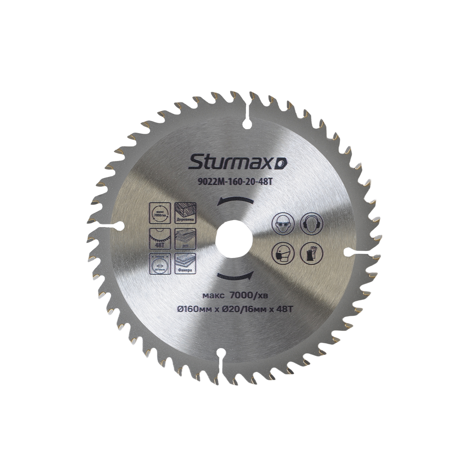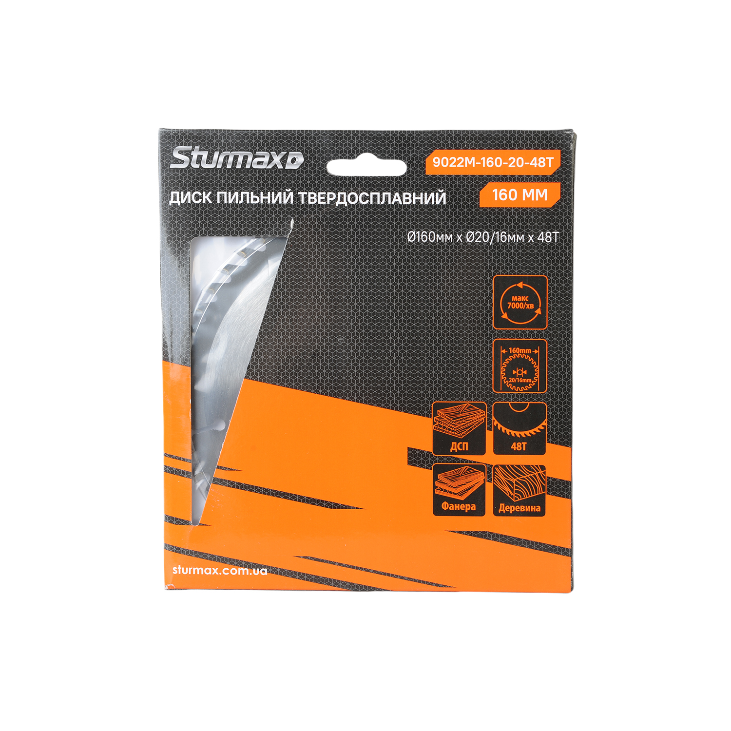 Sturmax 9022M-160-20-48T Диск пильний 160х20/16 мм 48 зубів по дереву – Sturmax