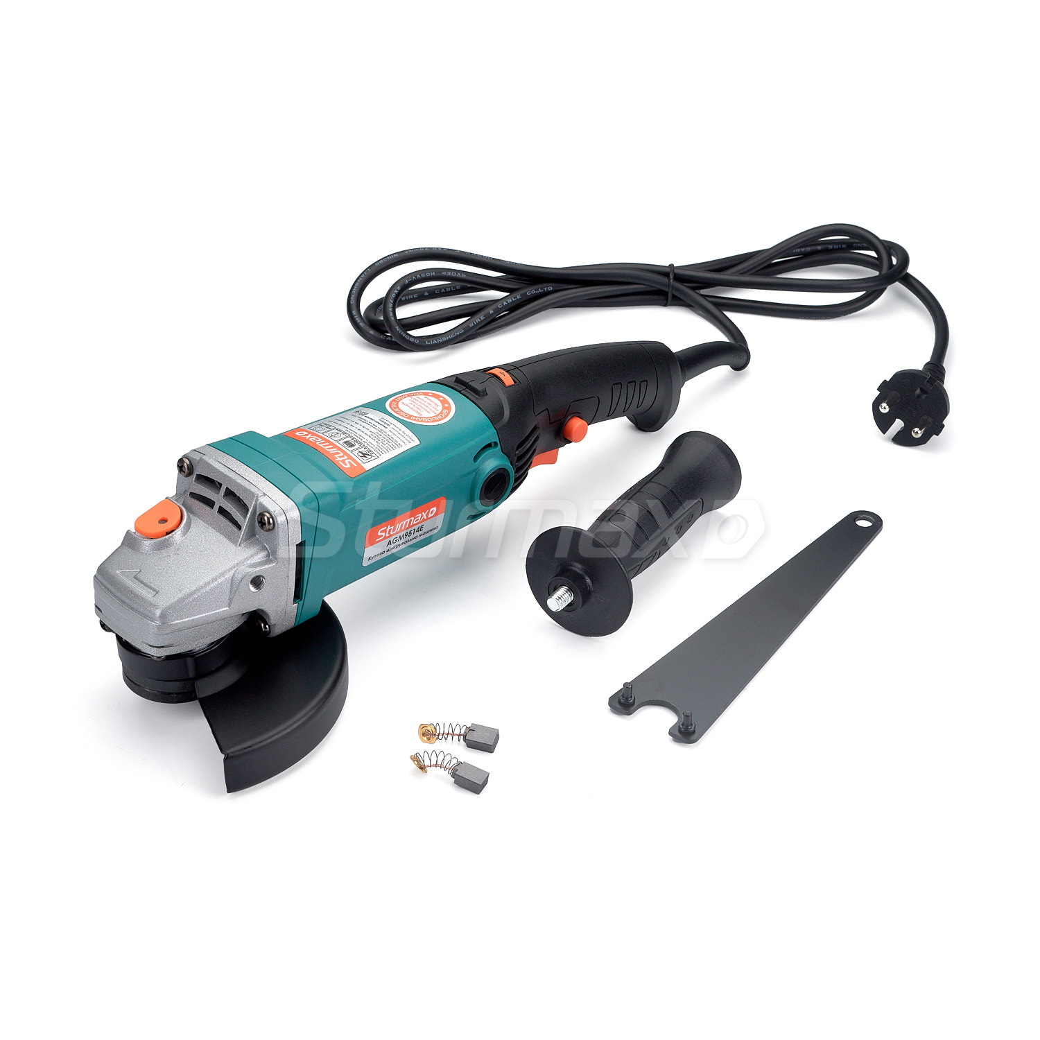 Sturmax AGM9514E – універсальна, компактна болгарка (КШМ) побутового класу під робочий діаметр диска 125 мм. Інструмент має невеликі габаритні розміри та масу, що значною мірою сприяє кращому контролю, та зручності застосування навіть під час проведення робіт в умовах обмеженого простору. Модель оснащена потужним 1250 Вт електродвигуном та редуктором із шестернями підвищеної міцності, що забезпечують надійну та стабільну роботу інструменту при виконанні різноманітних відрізних або зачисних операцій. Передбачена функція електронного регулювання обертів у широкому діапазоні від 4000 до 11000 об/хв, що дає змогу налаштувати оптимальну швидкість обертання оснастки. Наявність функції фіксації пускової клавіші позитивно впливає на комфорт при тривалому, безперервному використанні. Функція швидкого доступу до щіток забезпечує можливість заміни щіток без необхідності розбору елементів корпусу інструмента. У штатну комплектацію моделі Sturmax AGM9514E входять: бокова рукоять, ключ для зміни оснастки, а також комплект запасних щіток.