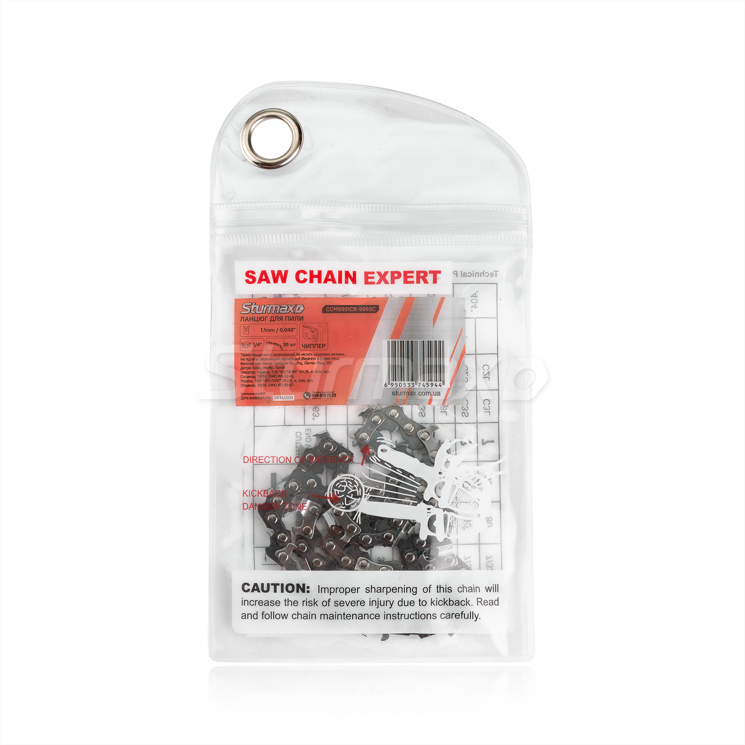 Sturmax CCM9901CR-996SC – пильний ланцюг 37 ланок, ширина паза 0.043″, крок 1/4″, круглий зуб. Призначений для ланцюгових пилок. Має малі вібрації і низький рівень шуму.