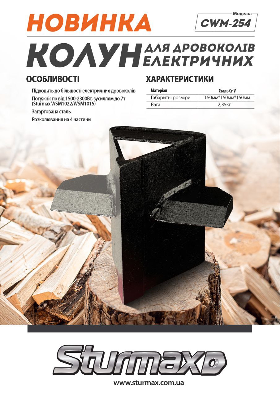 Колун для дровоколів електричних Sturmax WSM1015 та Sturmax WSM1022.
