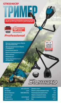 ГоловнаКаталогАкумуляторна 20В лінійка інструменту Сordless Range під єдину АКБSturmax GTM3540CRP Тример акумуляторний 40 В, безщітковий дв.,без акум. та зарядки