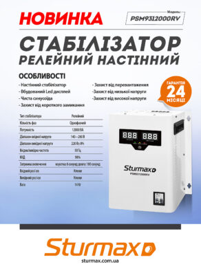 Sturmax PSM9312000RV Стабілізатор напруги релейний 12000 ВA – Sturmax