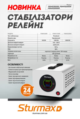 Sturmax PSM932000R Стабілізатор напруги релейний 2000 ВA – Sturmax